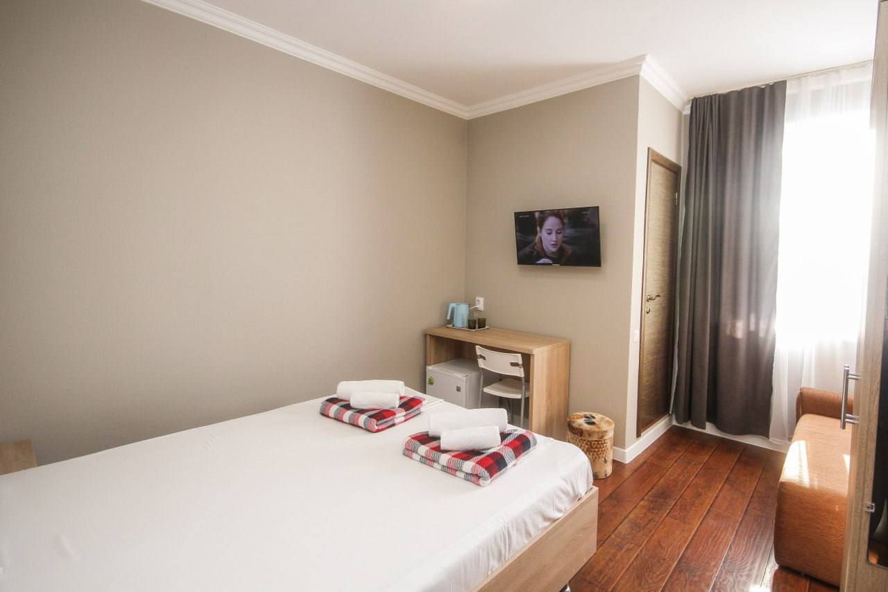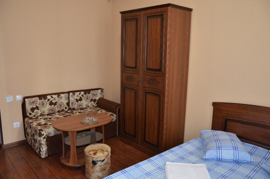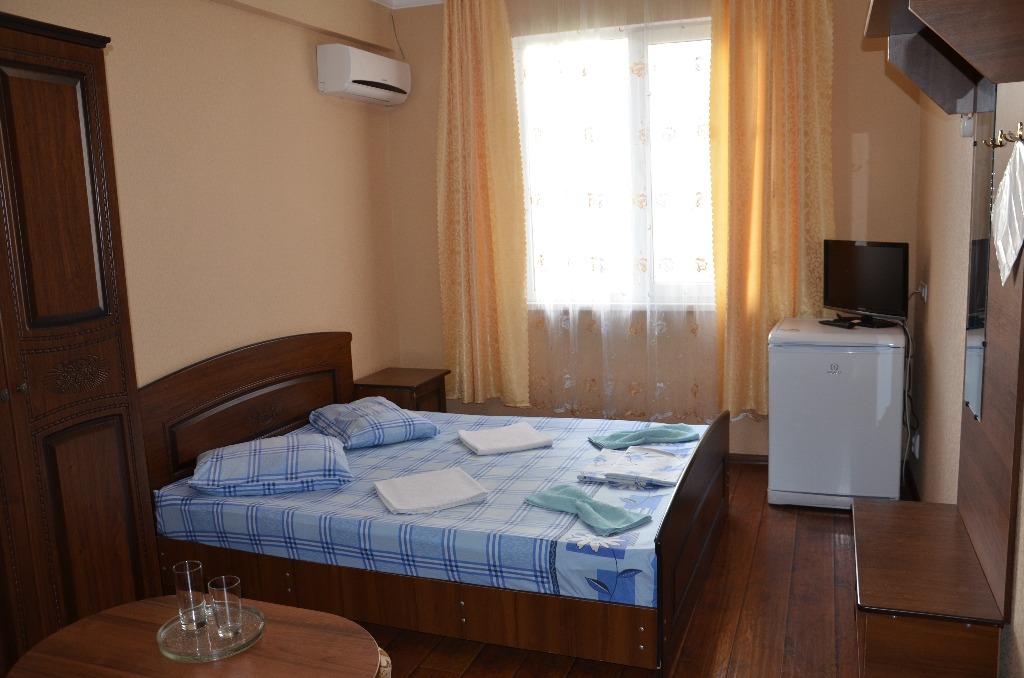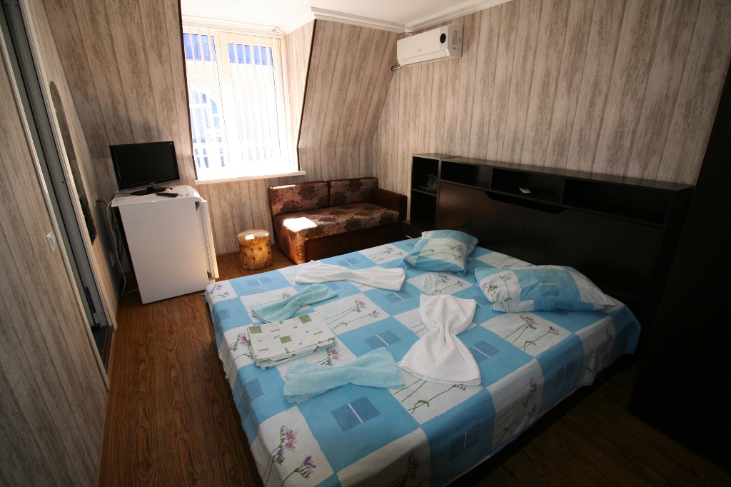 Номера: 2-х местные номера с доп. местом (кровати раздельные или 2-х спальные) . Номера расположены на 2-ом этаже. В каждом номере предусмотрена собственная ванная комната , фен, тв,кондиционер,шкаф, холодильник. Стиральная машинка предоставляется за доп. плату. На этаже имеется гладильная доска с утюгом.