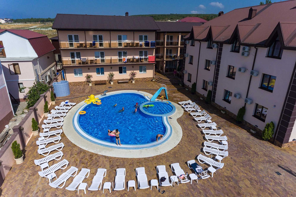 Инфраструктура: Wi-Fi, детская анимация 1 раз в неделю, бассейн с детской чашей, подогревом и детской водной горкой, детская площадка, зона барбекю, столовая в корпусе "Клен", парковка, гладильная доска, утюг, стирка (платно). Кухни для самостоятельного приготовления пищи нет.