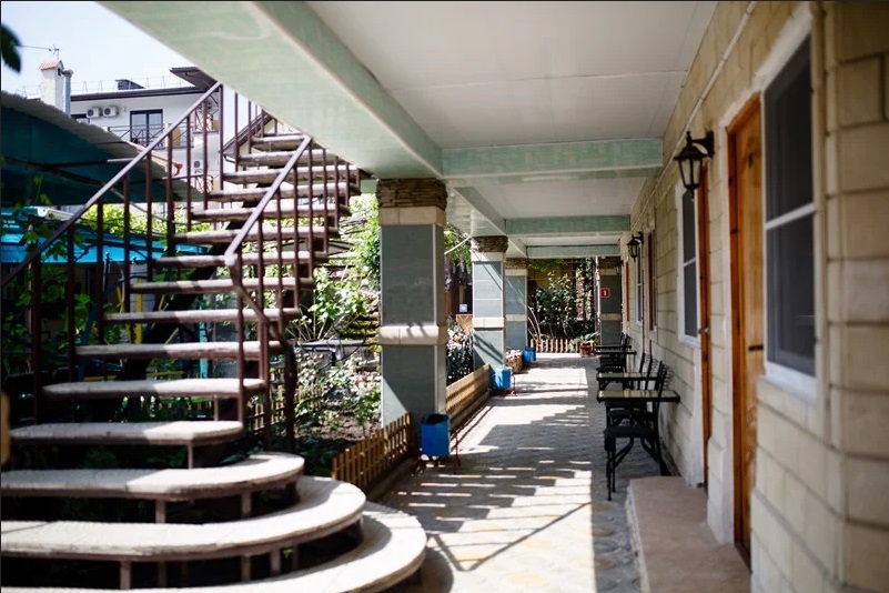 Расположение: территория гостевого дома составляет 12 соток. Есть выходы на Пионерский проспект, 1й проезд и улицу Песчаная.
