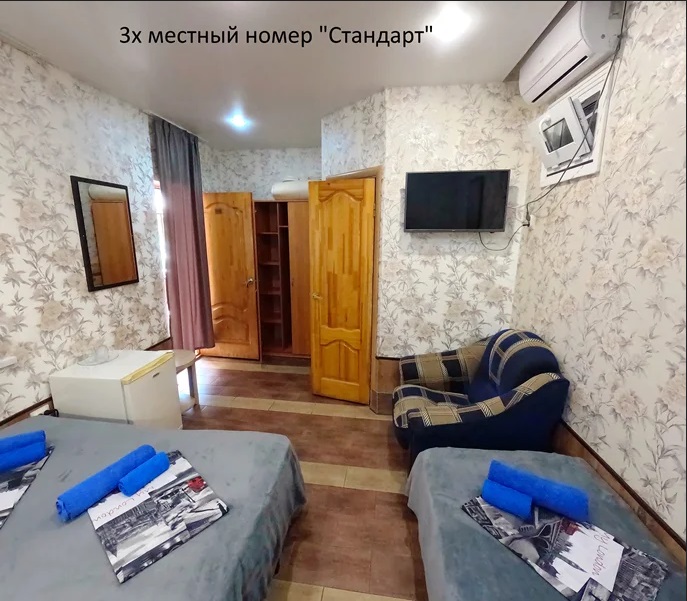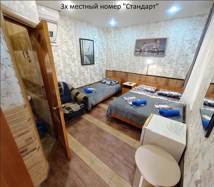 2, 3 местные однокомнатные номера "стандарт" со всеми удобствами. расположены на 1и 2 этажах Комнаты оборудованы: холодильниками, телевизорами, сплит-системами имеется балкон и санузел.
