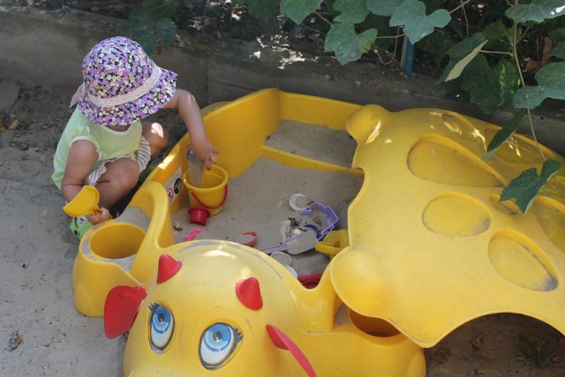 Для детей детская площадка, песочница.