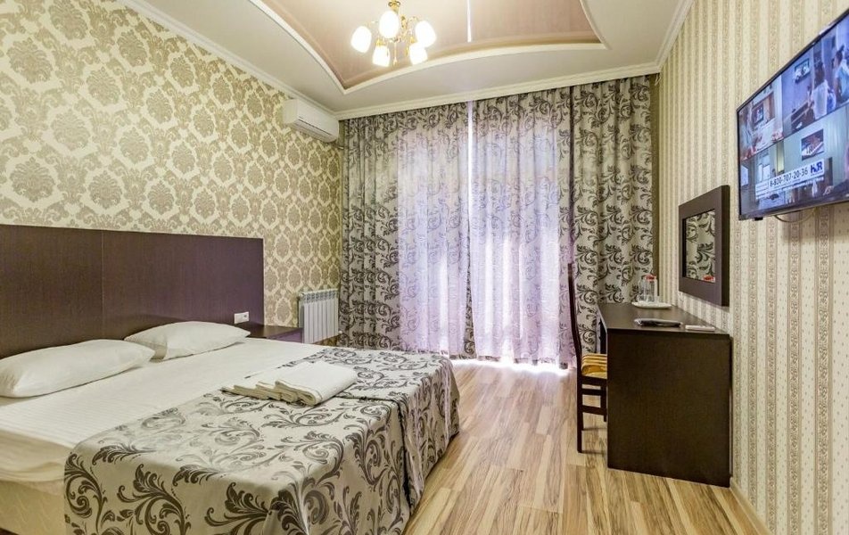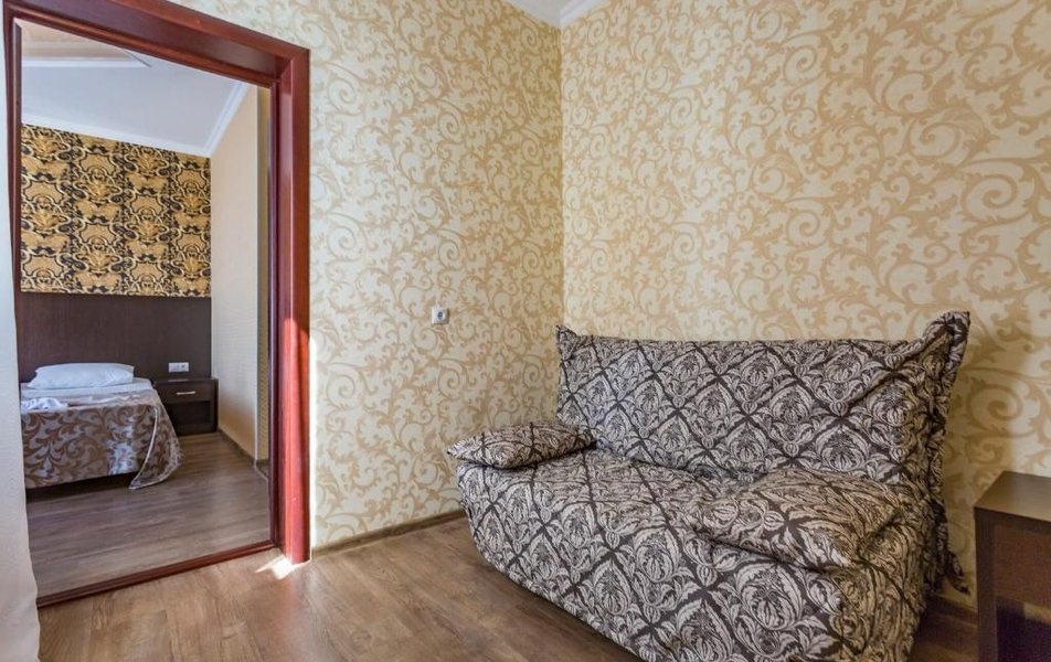 4-х местный 2-х комнатный номер со всеми удобствами (духспальная кровать и двухспальный диван), ТВ, холодильником, кондиционером, феном. Балконы не во всех номерах.