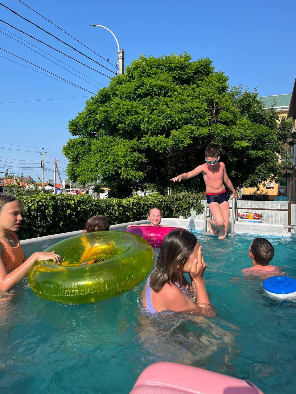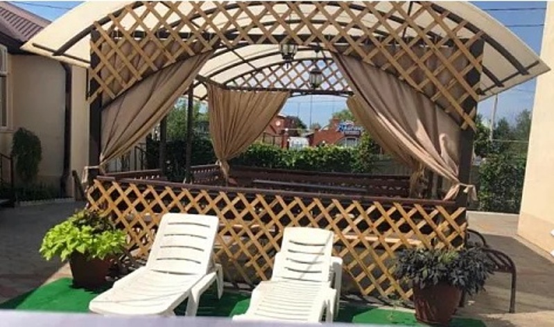 К услугам отдыхающих: просторная территория с беседкой, столиками и зонтами, бассейн, бесплатный интернет WI-FI, столовая с комплексным питанием, общая кухня, просторный, вымощенный плиткой двор, усаженный растениями и цветами, детская площадка с качелями горками и игрушками, место для приготовления шашлыка (мангал, шампура), лавочки, качели с навесами