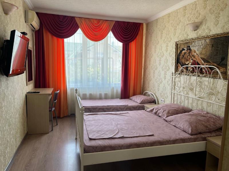 2-3-местные однокомнатные номера с полными удобствами. В номере: санузел с душем , холодильник, цифровое телевидение, сплит-система, Wi-Fi интернет, стулья, тумбочки, шкаф, стол