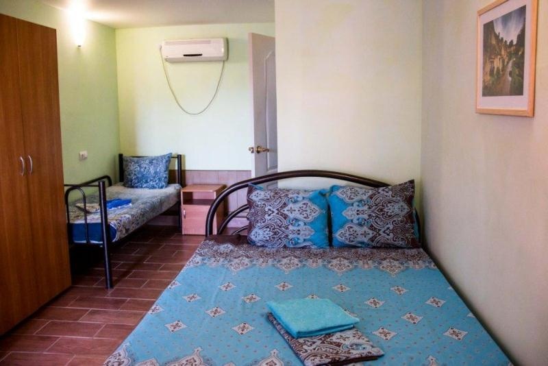 3-х местный номер с удобствами, ТВ, холодильником, кондиционером. Номера оснащены: односпальная и двуспальная кровати, шкаф, стулья, прикроватные тумбочки, стол, вешалка.