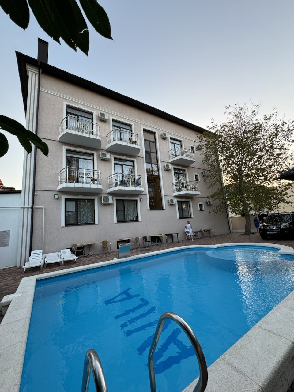 Инфраструктура: Wi-Fi, бассейн с подогревом, утюг и гладильная доска на каждом этаже, кухня для самостоятельного приготовления пищи, благоустроенный двор со столиками, стирка (платно). Детской площадки нет.