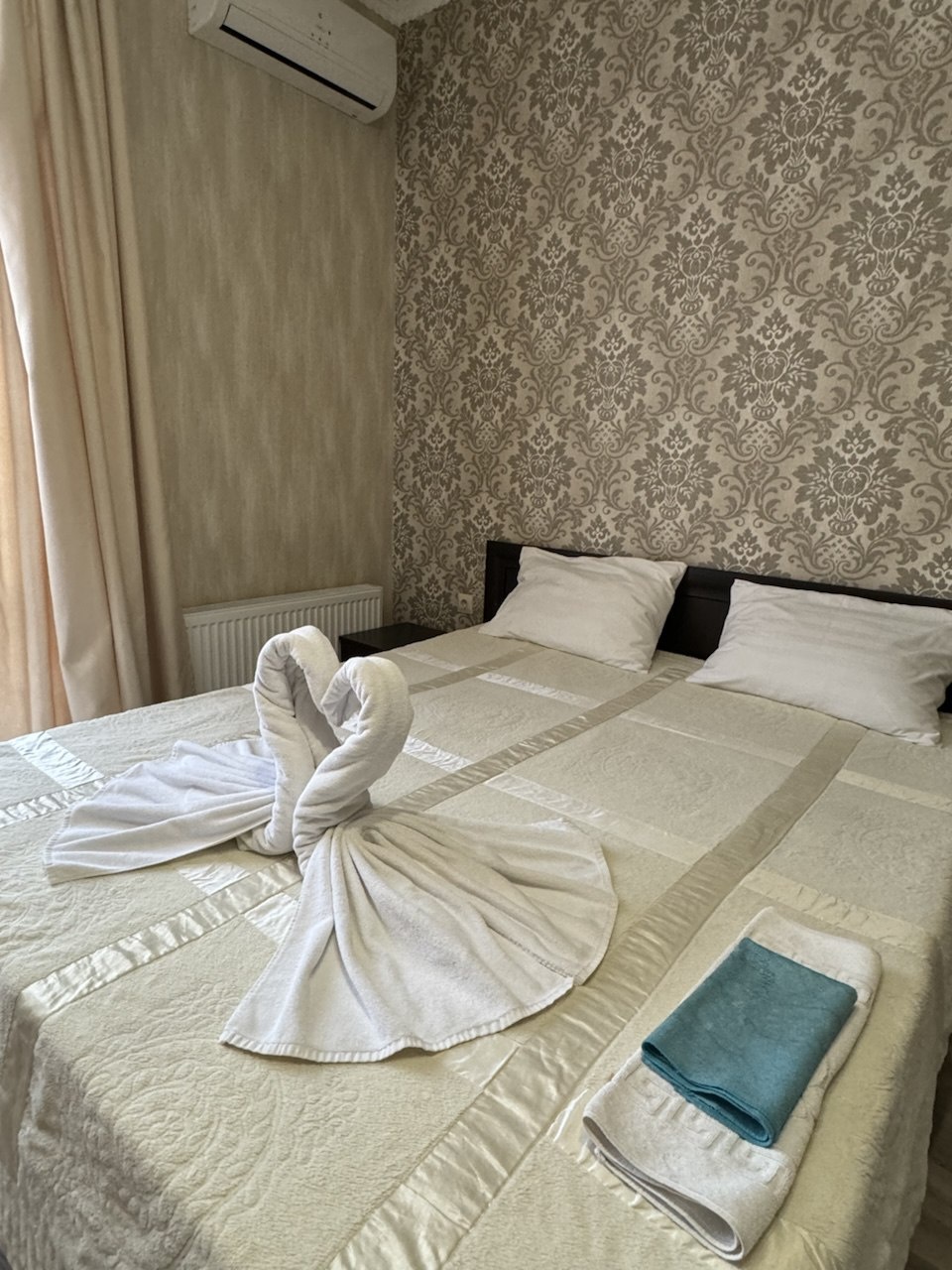4-х местные 2-х комнатные номера с удобствами, ТВ, холодильником, кондиционером, балконом. Одна комната проходная. Номер оборудован 2-х спальной кроватью и раскладным диваном.