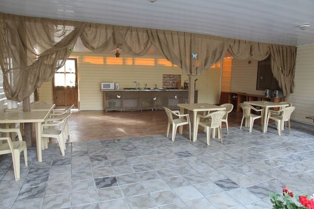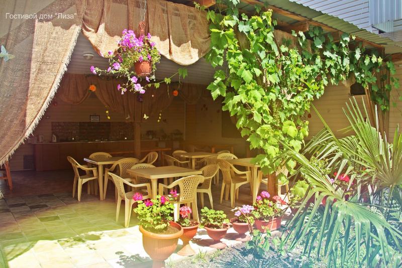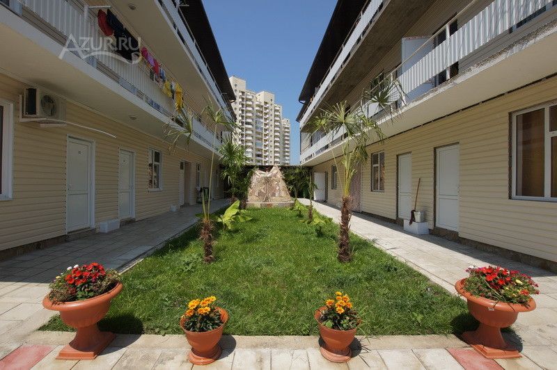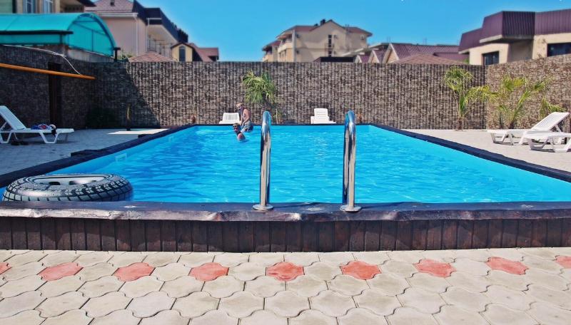 Расположение: современная новая мини-гостиница в центральной части курортного поселка . Рядом с аквапарком «Наутилус», центральным рынком, гипермаркетом. Очень красивая территория с бассейном (с подогревом в июне, сентябре, октябре) и зоной отдыха с шезлонгами, большой обеденной зоной, где днем можно укрыться от жары, декоративным бассейном и мини-водопадом.