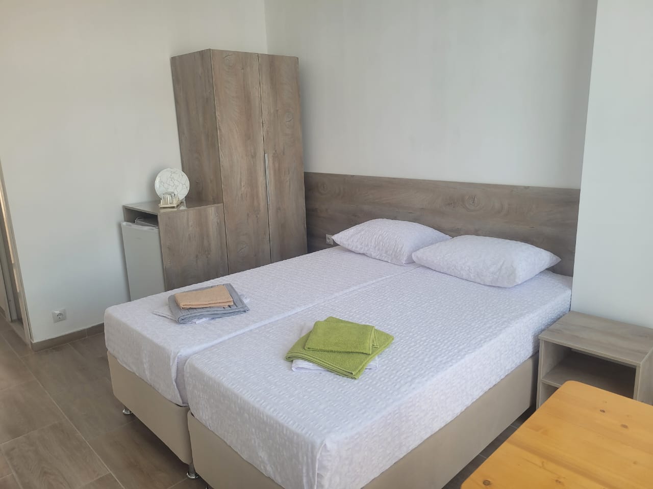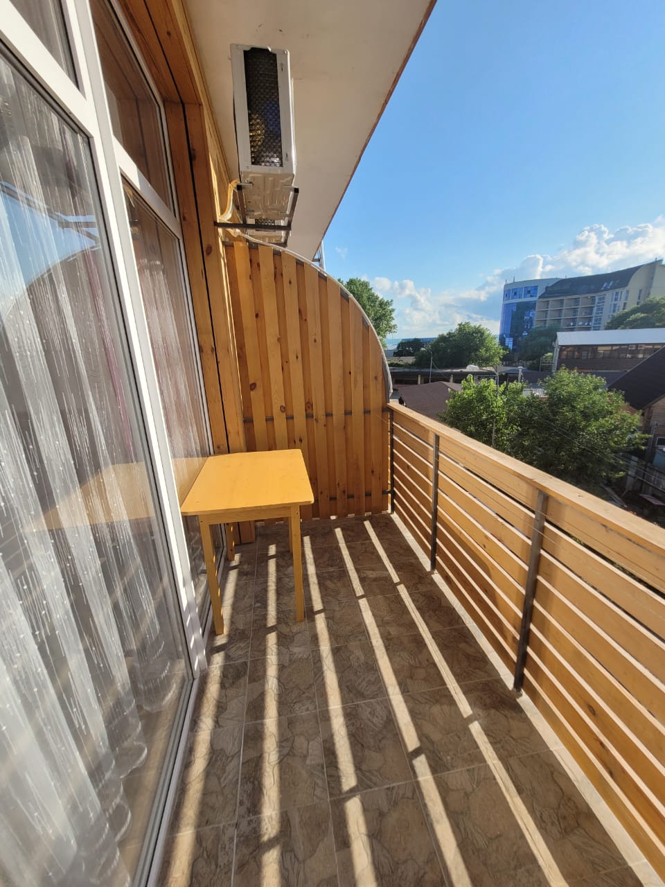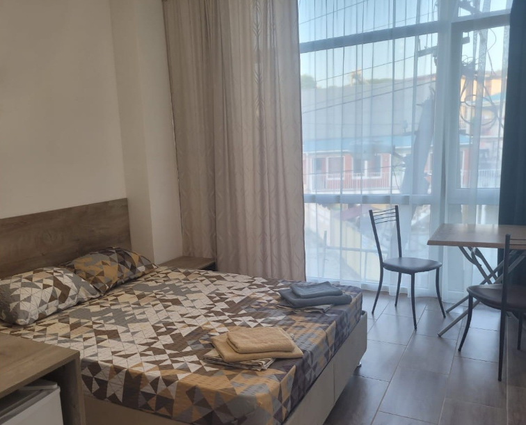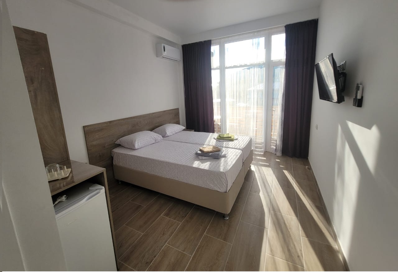 - 2-местные номера с удобствами. В номерах туалет, душ, телевизор, холодильник, кондиционер, фен, балкон или панорамное окно. Из-за плотности застройки вид может быть на соседние здания.