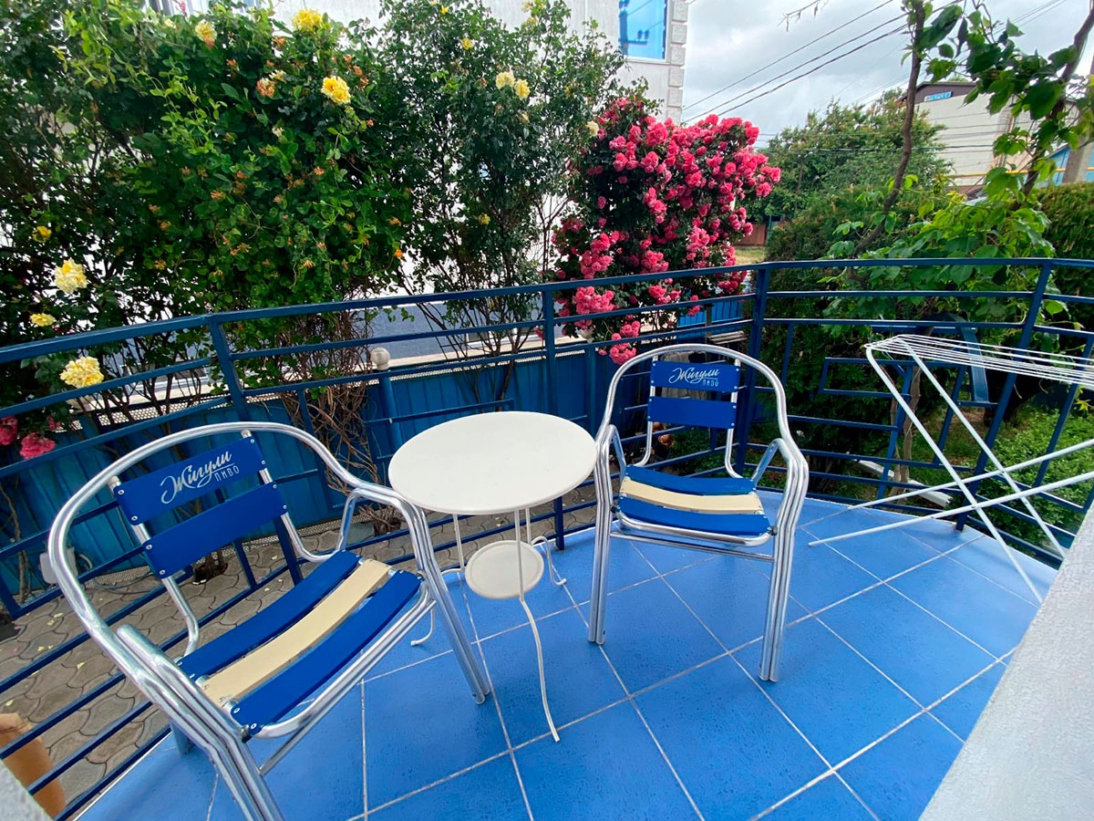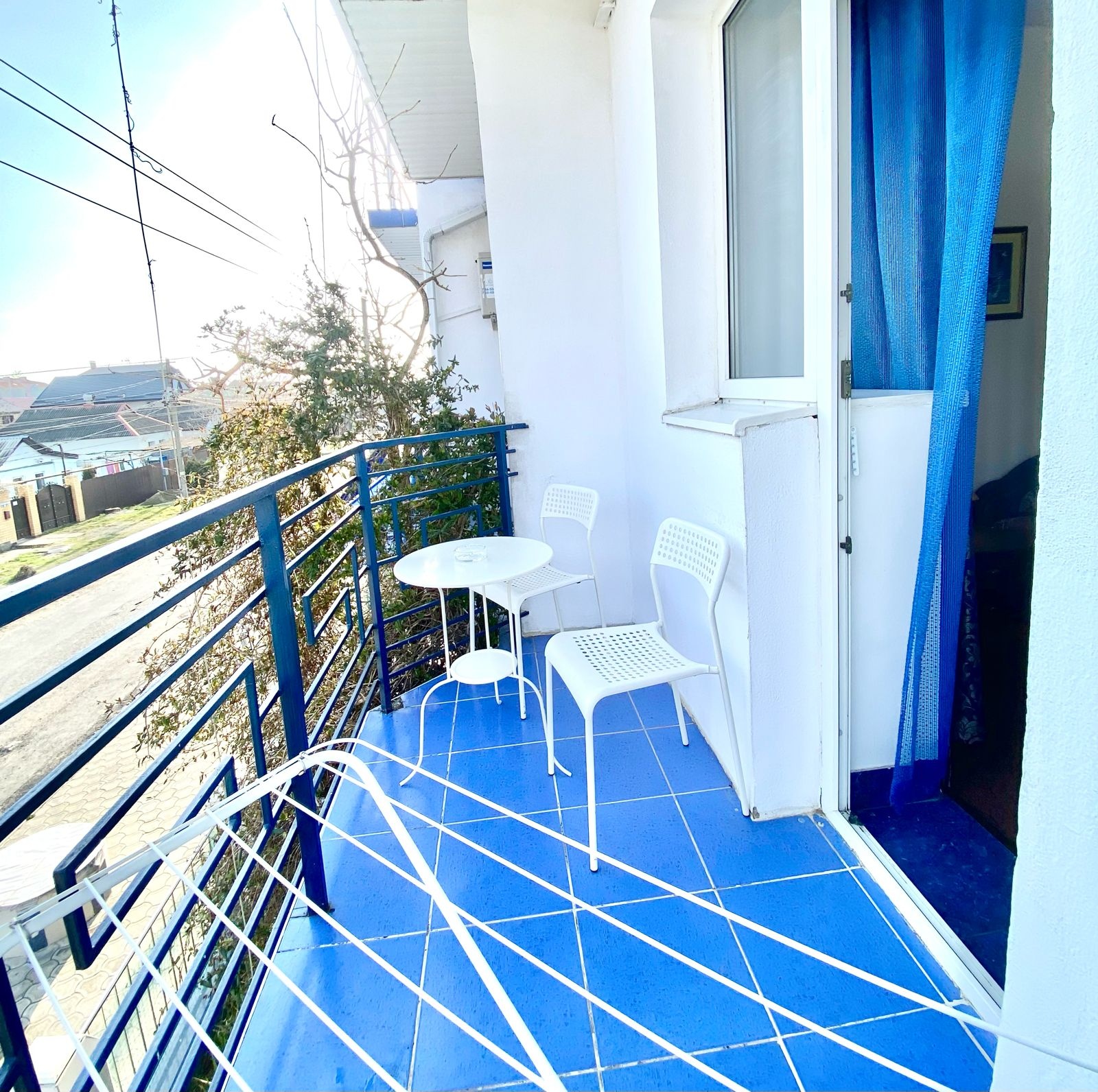 4-х местный 2-х комнатный люкс с террасой: комфортный номер с большим балконом с видом на двор для 2-6 чел. (столик с стульями, сушилка для белья), ванная, санузел. В 1 комнате: двуспальная кровать, евро-диван (100х190), прикроватные тумбы, шкаф с зеркалом, ТВ, сплит-система, сейф. Во 2 комнате: угловой мягкий диван (140х190), холодильник, ТВ, комод, журнальный столик, сплит-система.