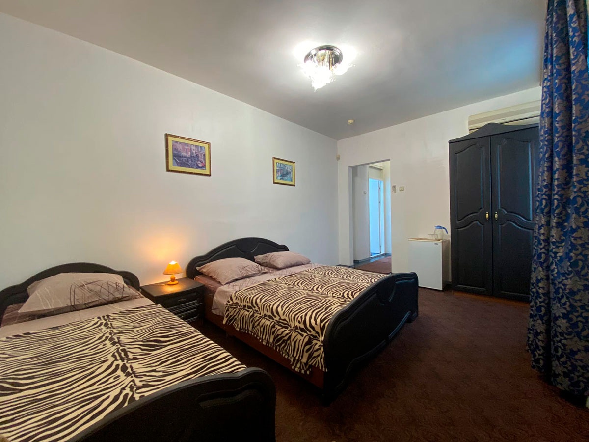 2-х местный полулюкс 1 и 2 этаж: простой, комфортный номер с балконом. В номере двуспальная или односпальные кровати, прикроватные тумбочки, столик, стулья, шкаф для одежды, телевизор, кондиционер, холодильник, сейф.