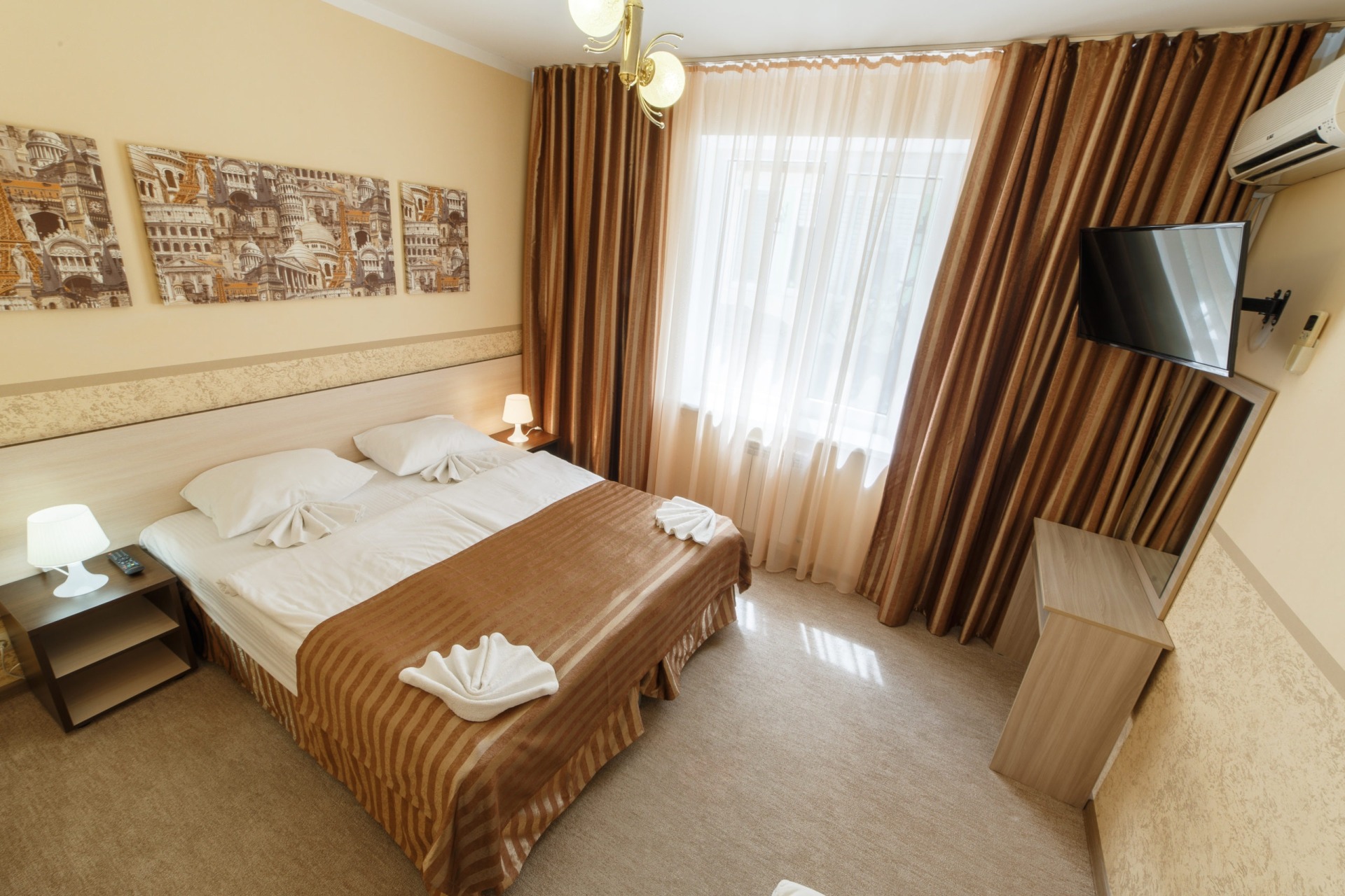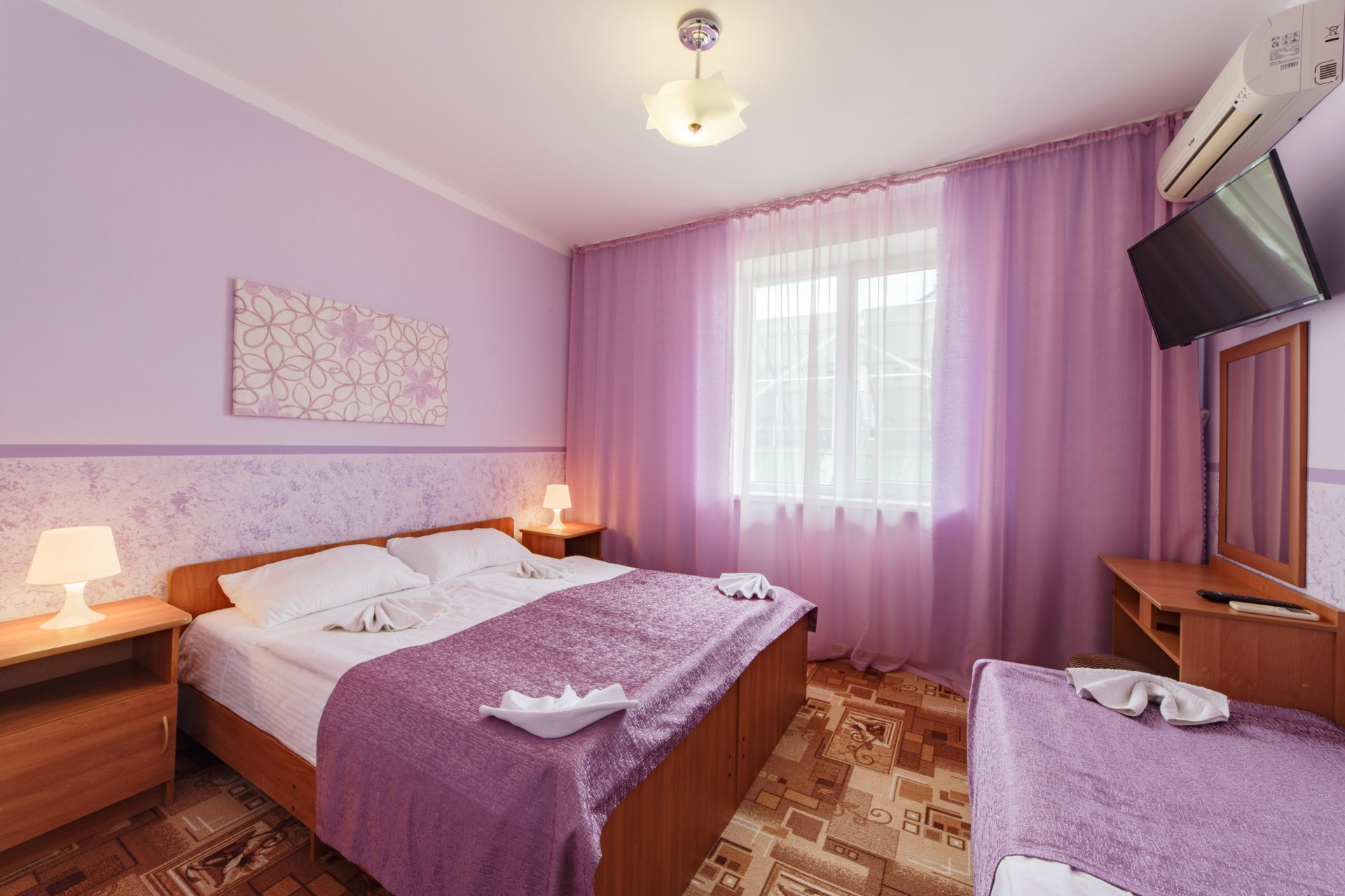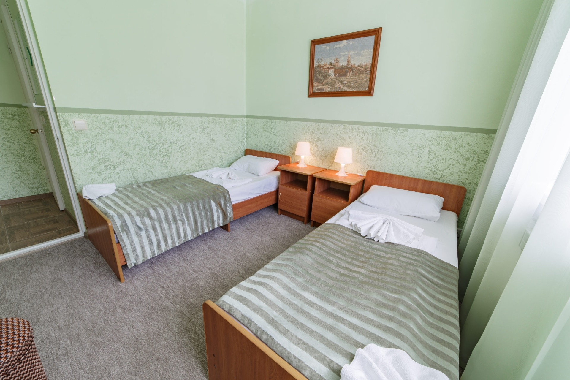 2,3-х местные номера "полулюкс" с удобствами. Оснащены: 2-х спальная или 1-но спальные кровати, прикроватные тумбочки, шкаф, телевизор, холодильник, кондиционер, душ, туалет.