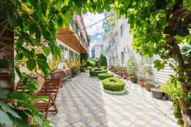 Размещение: Современное 4-х этажное здание с уютной зеленой территорией и бассейном.
