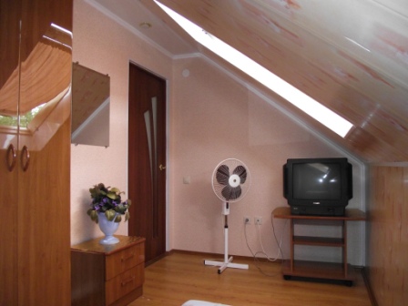 При размещении в доме: 3-ий этаж – мансарда с лоджией (отдельный вход с улицы по лестнице). На мансарде – душ, 2 туалета на три номера, центральный кондиционер.