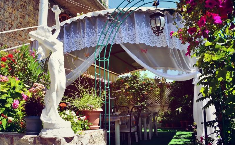 К услугам отдыхающих: Уютный цветочный дворик с беседкой, мангал, большое пространство для вашего отдыха.