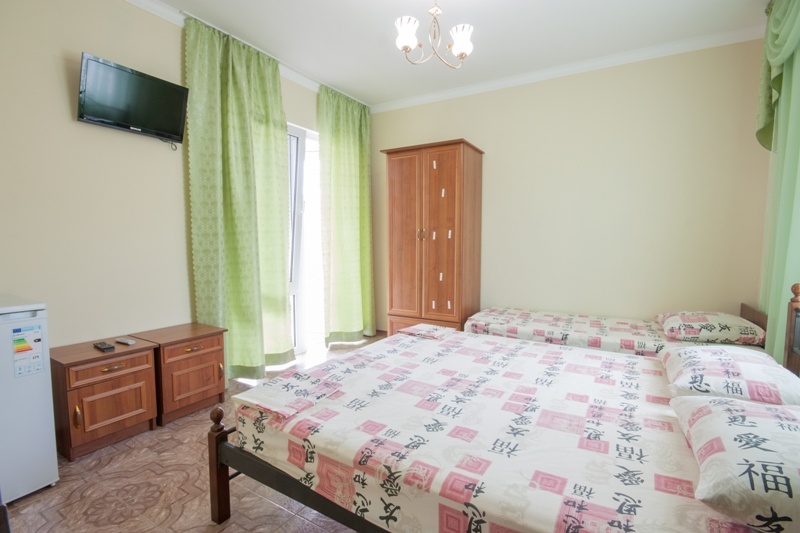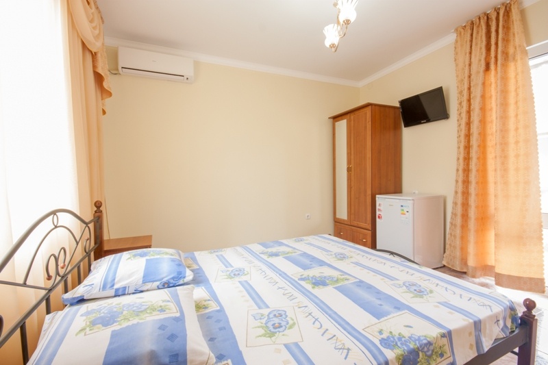 2-х местные номера со всеми удобствами, ТВ, холодильником, кондиционером, набором посуды, чайником, балконом. В номерах 2-х спальная кровать. Холодная и горячая вода - постоянно. Доп.место не устанавливается.