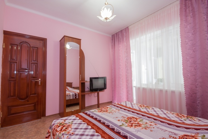 4-х местные 2-х комнатные номера со всеми удобствами, ТВ, холодильником, кондиционером, набором посуды, чайником, расположены на 1-этж., и с доп. местом на 4-этж. В номерах 2-х спальная кровать, диван- кровать, или односпальные кровати. Дополнительное место - евро раскладушка.